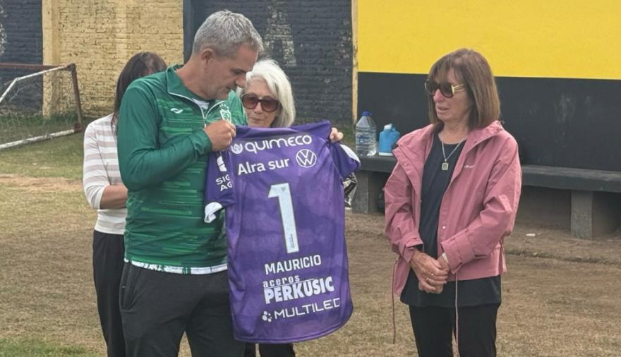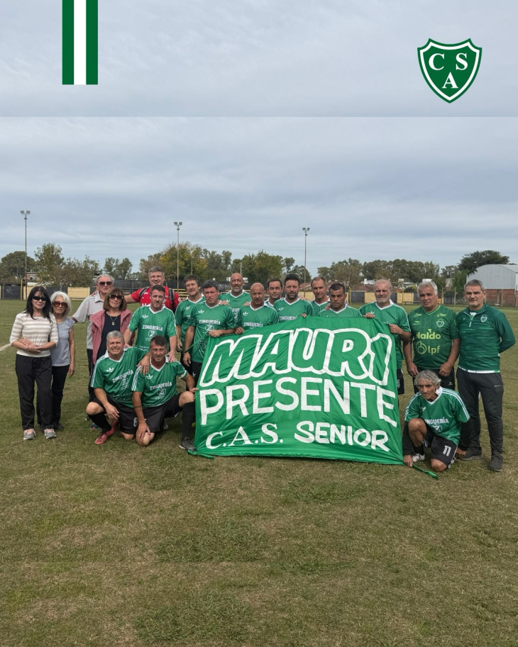 Los integrantes del equipo Senior +48 de Sarmiento sacaron a relucir la camiseta usaba Mauricio Gianfrancesco a través de Alejandro Corbanini y también una bandera con la leyenda "Mauri presente" que siempre está colgada cada vez que juega el elenco verdolaga en la Liga Profesional.